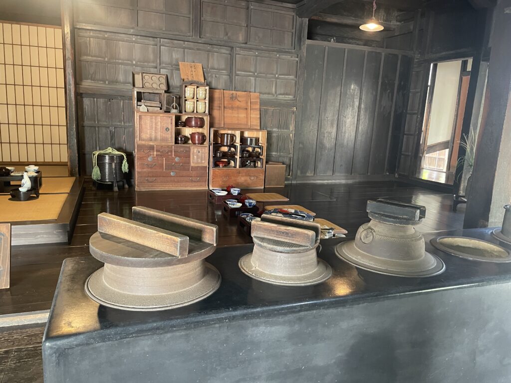 財を成した大橋家が1796年に建てた町家とのこと。靴を脱いで中を歩くと、昔の質素な調度品が置かれ、至るところに可憐な花が飾ってあり、とても良い雰囲気です。