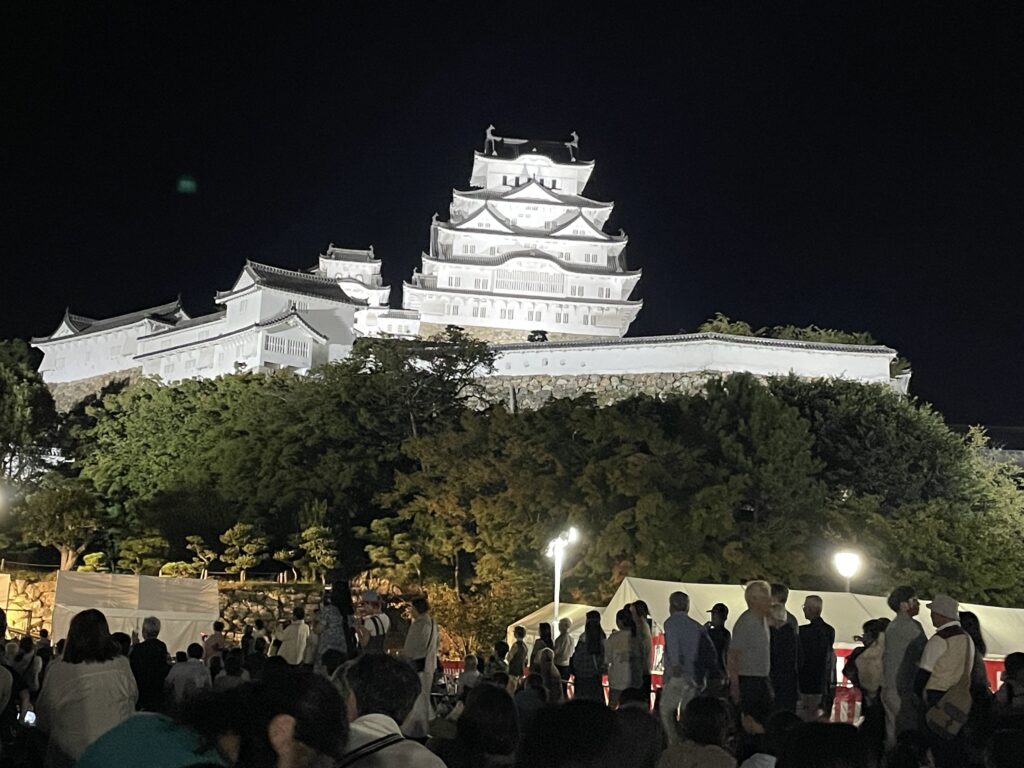 ラッキーなことに、今日は中秋の名月で、年に一度の「観月会」が姫路城前の公園で開催されるようです。一旦、チェックインのためにホテルへ行き、19時ごろに再び公園へ訪れました。
