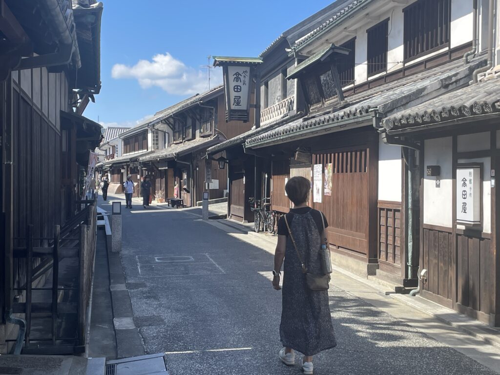 美観地区に向かいます。白壁の商家の街並みが素敵です。