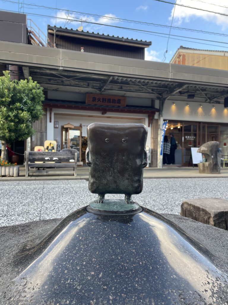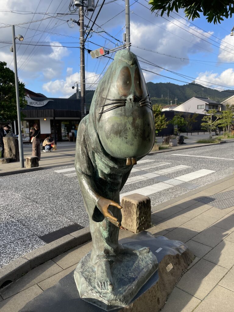 約800メートルほどの通りの両側に土産店や飲食店が軒を連ねていて、歩道を歩くと妖怪達のブロンズ像が10mおきぐらい現れるので飽きません。