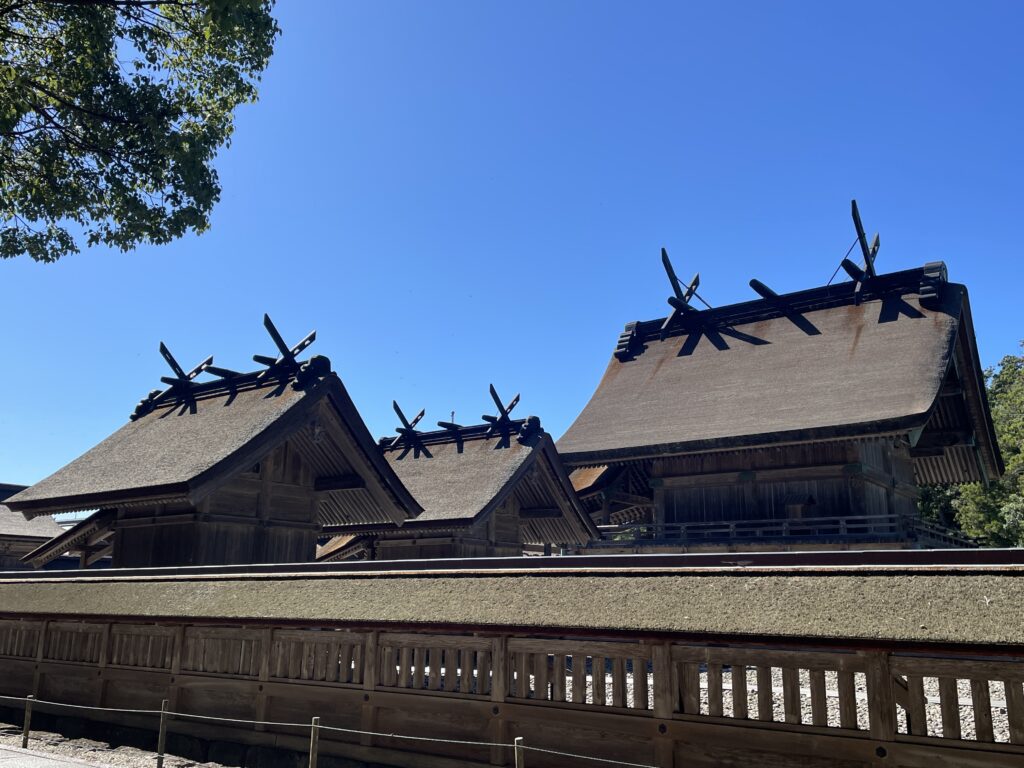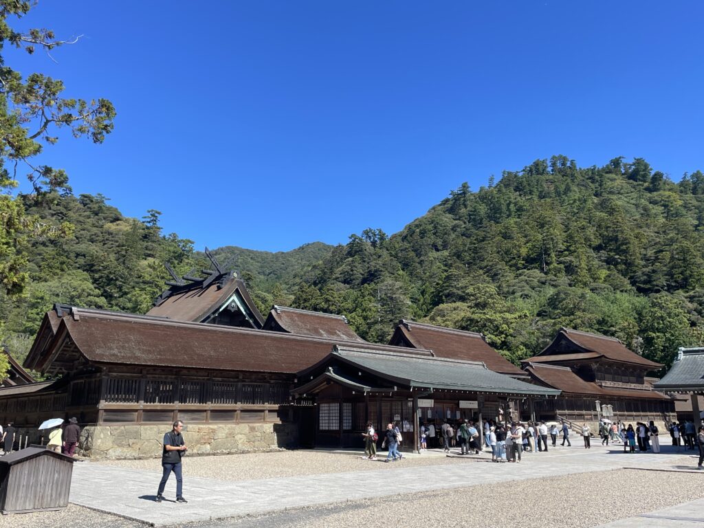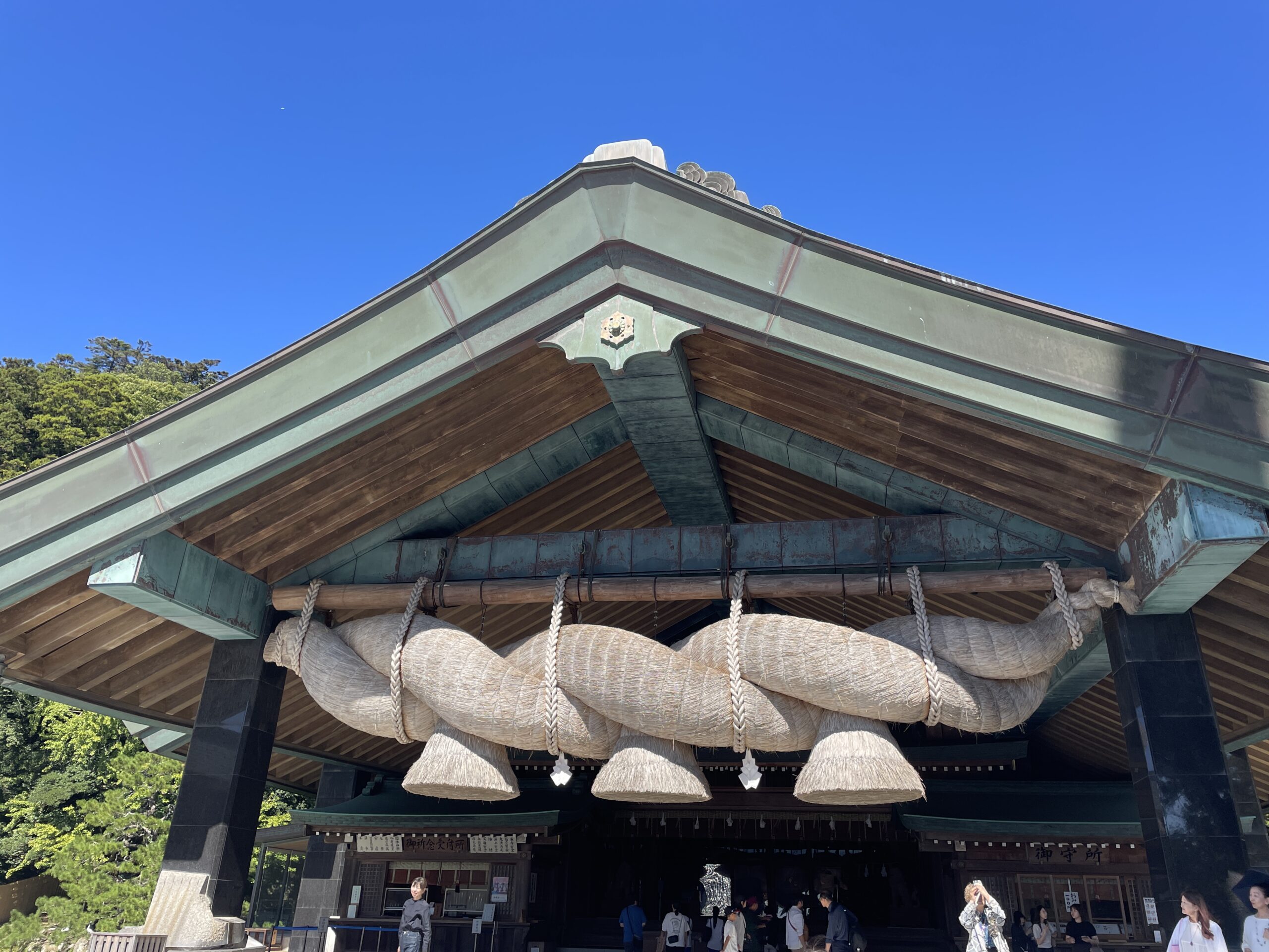 やはり神様の総本山というだけあり、青空が広がる明るい雰囲気の中にも厳かな雰囲気が漂います。神社は2礼2拍1礼と思っていましたが、ここでは2礼4拍1礼です。思わず、お賽銭も普段より多めにしてしまい、至る所に賽銭箱があって硬貨がなくなってしまいました。