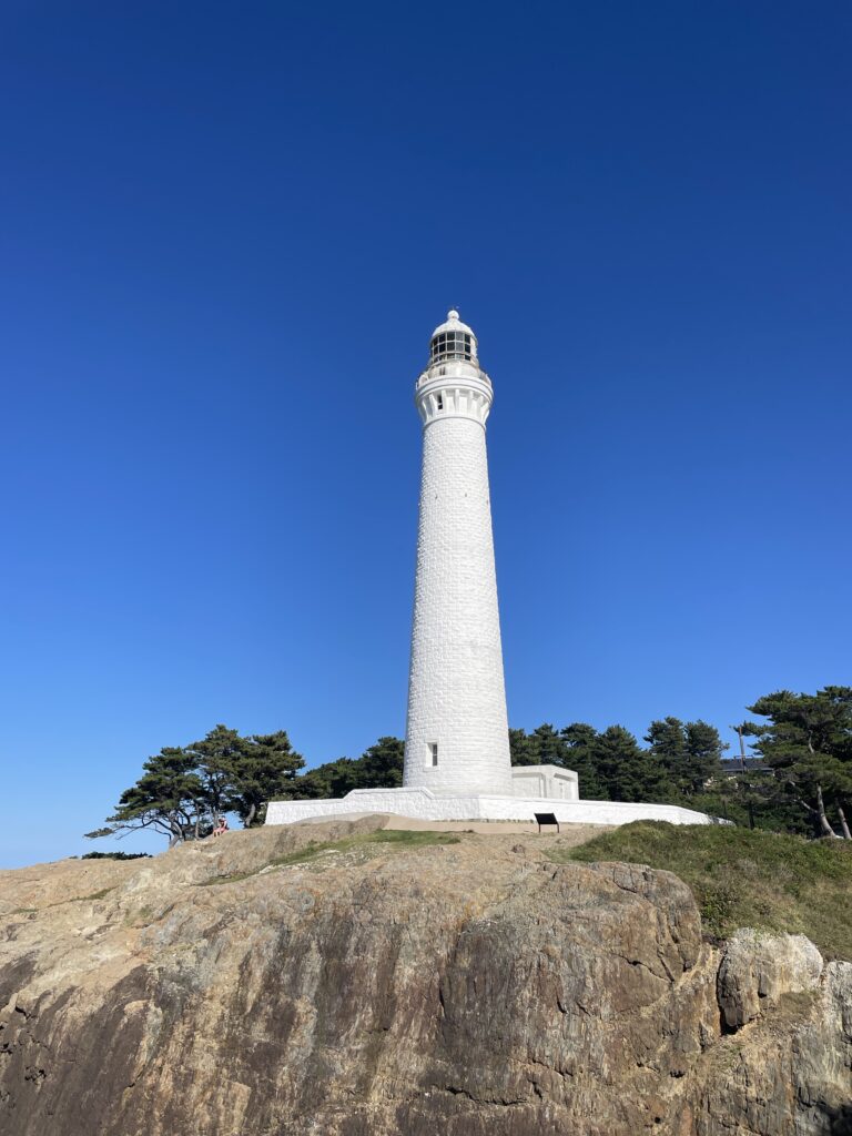 出雲大社から20分ほどで着きました。青い海、青い空をバックに白い灯台が映えます。美しい!
