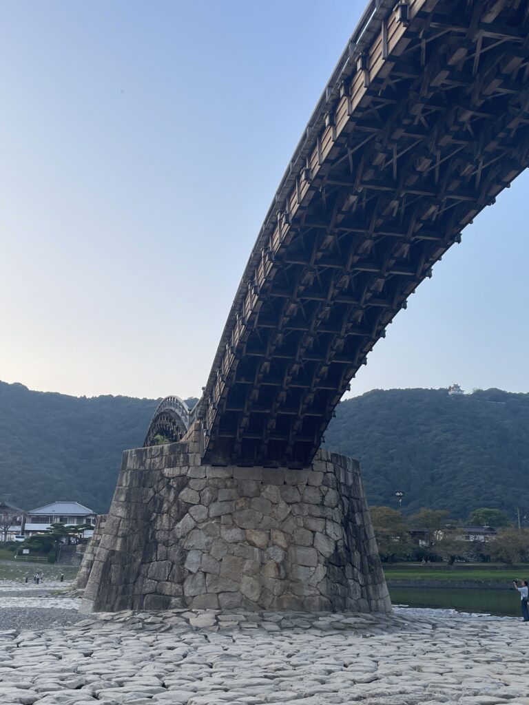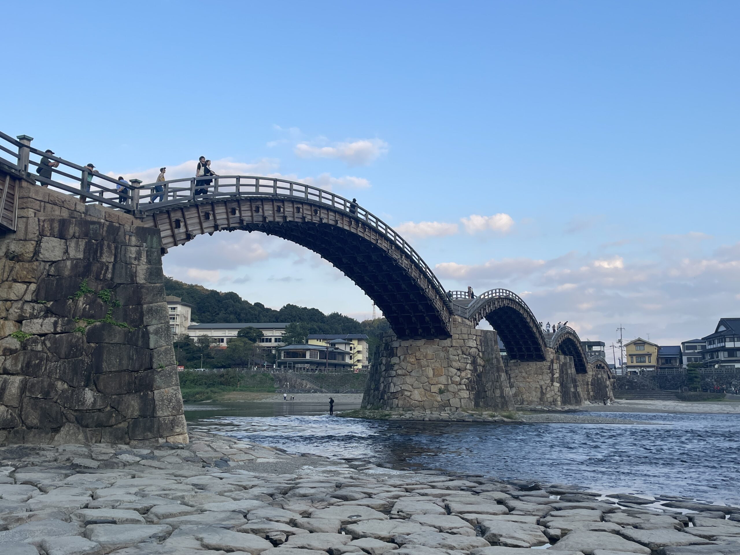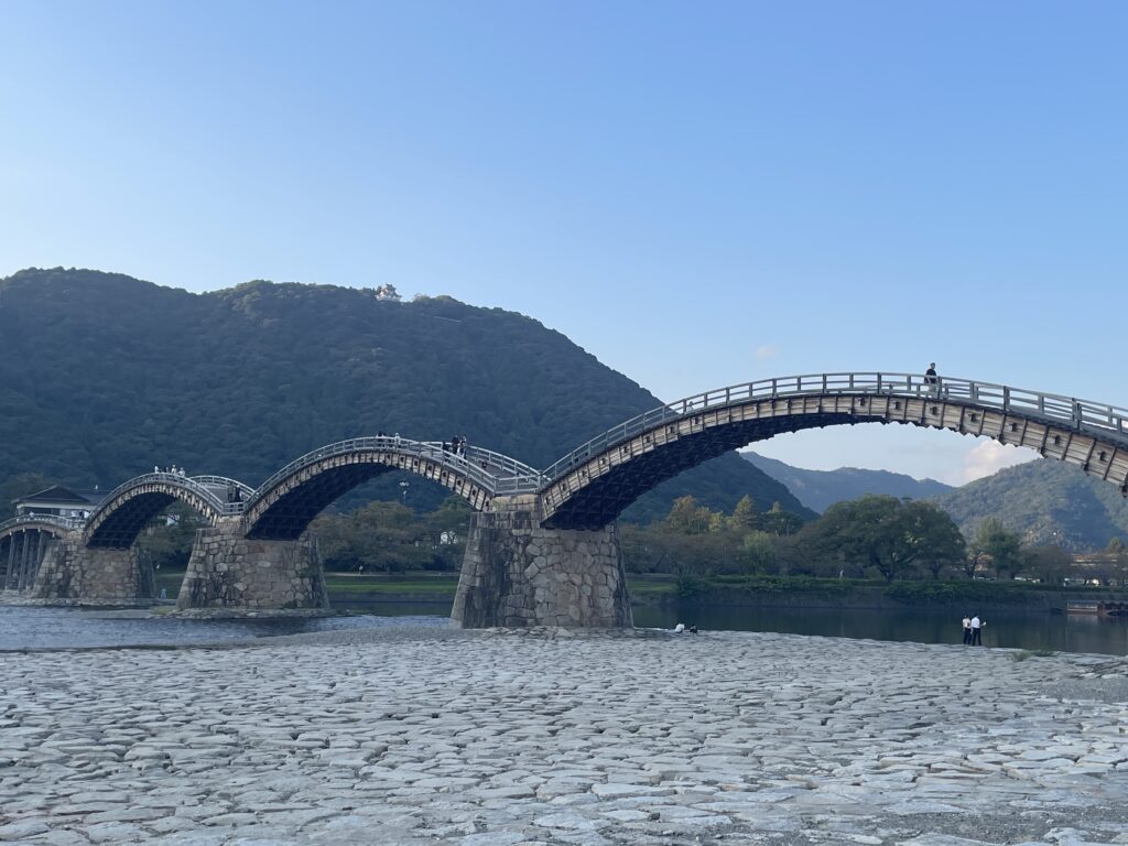 岩国の「錦帯橋」につきました。錦川にかかる木造の橋が美しいです。