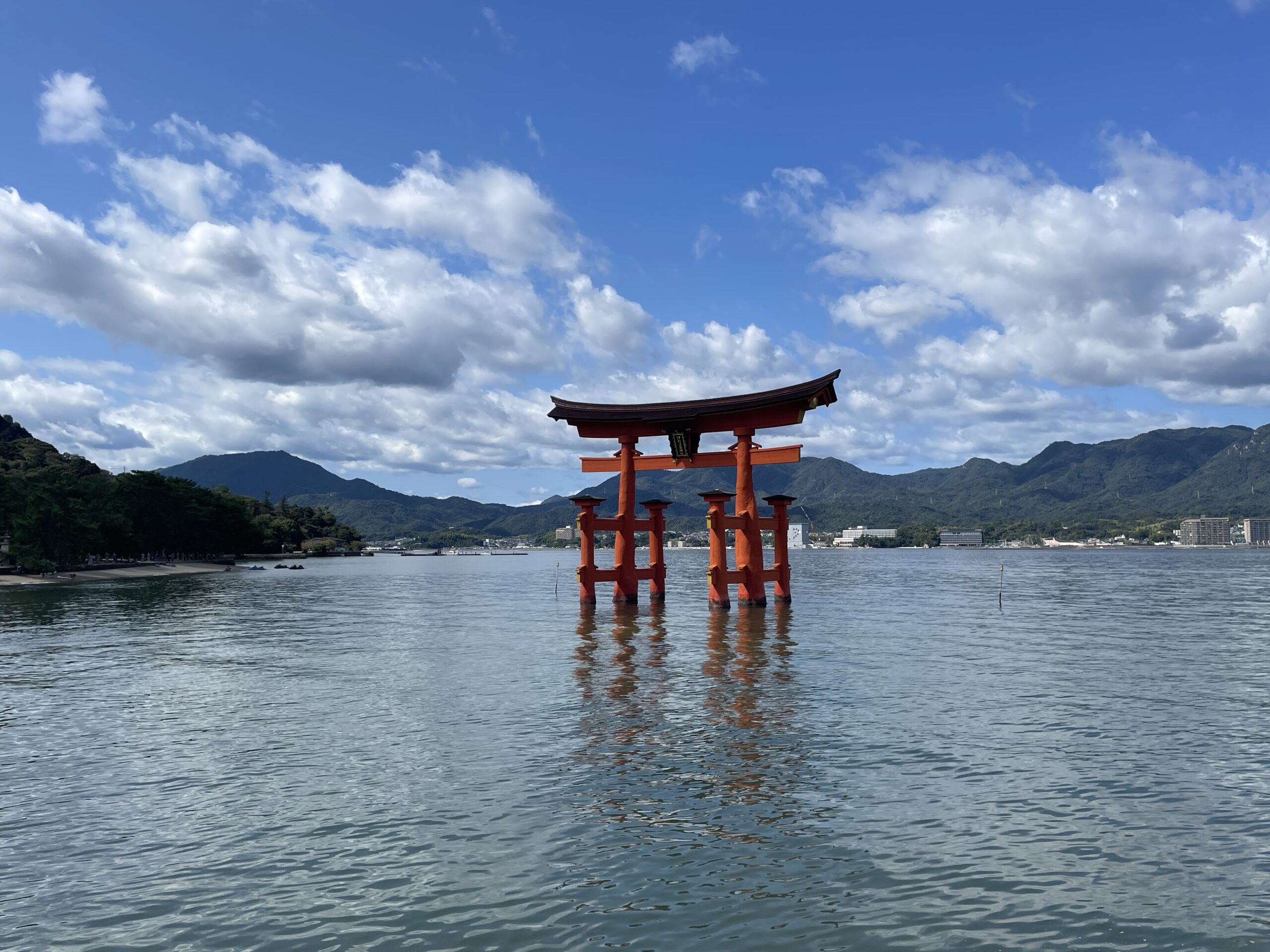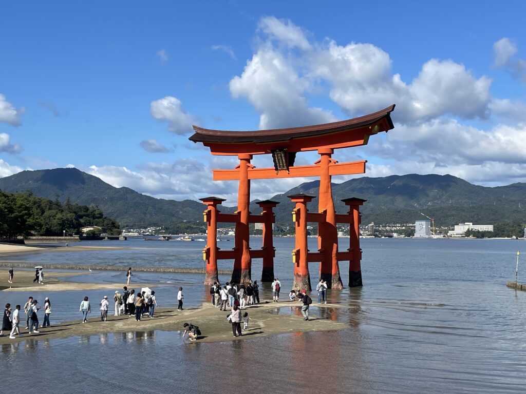 10分ほどで宮島へ着きました。ターミナルからも歩いて10分ほどで念願の赤い鳥居とご対面です。