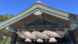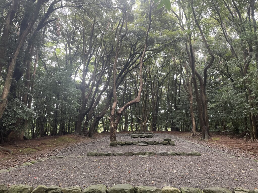 背の高い杉林に囲まれた参道を更に奥へ行くと、「高宮」と呼ばれる屋外の祭祀場が現れます。
