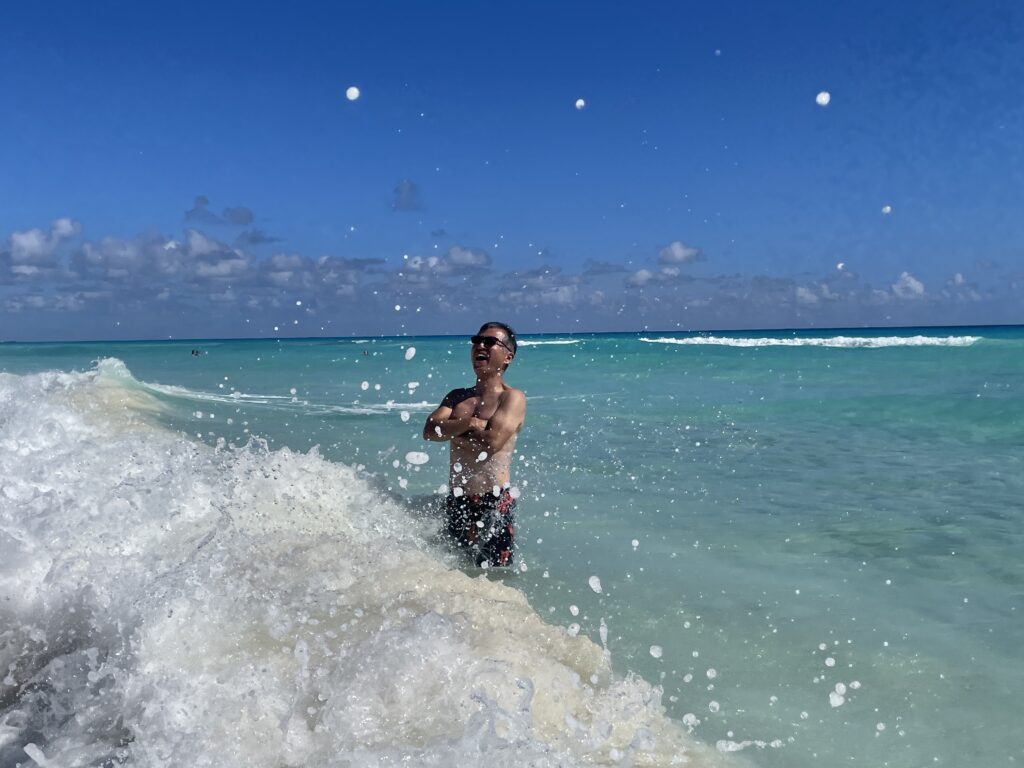 さすが世界的なビーチリゾートだけあって、海とビーチの美しさは素晴らしいです。私はビーチリゾートが好きで、ハワイ4島、モルディブ、ニューカレドニア、オーストラリア、アジアのリゾートなどに加え、今年はアマルフィやエーゲ海なども見て来ましたが、ここはトップクラスといえます。ホテルのプールから直接アクセスできる白い(真っ白ではないです)砂浜が30mぐらいあり、そこから胸ぐらいまでの深さのエメラルドグリーンの海が広がり、沖合にいくにつれて青みが増していきます。