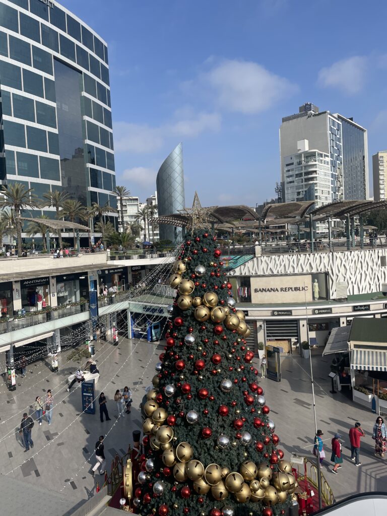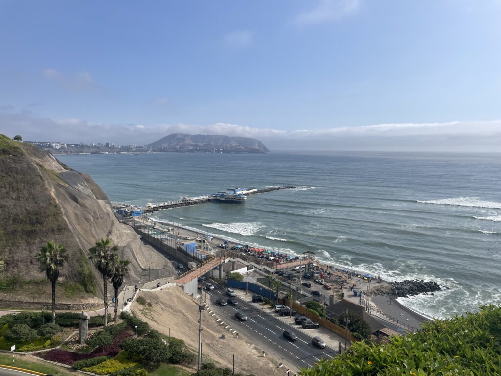ア・モール公園で男女が寄り添う変わったオブジェを見てから、ショッピングセンター「ラルコマール」へ行きました。断崖に立つ長めの良い場所で、ノースフェイスなどのブランドが揃い快適にショッピングできますが、値段はかなり高く感じました(円安のせい?)