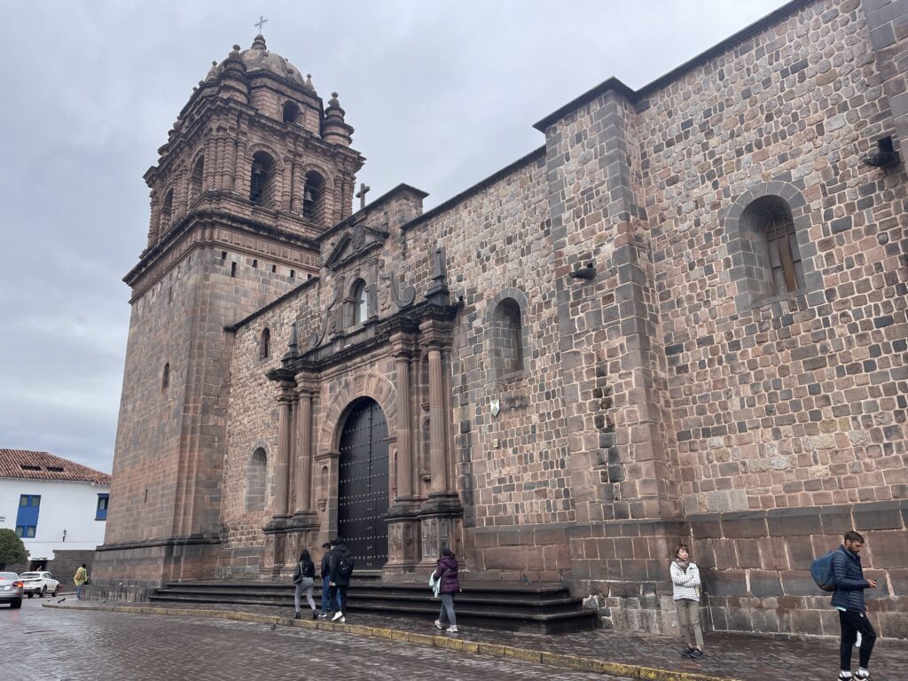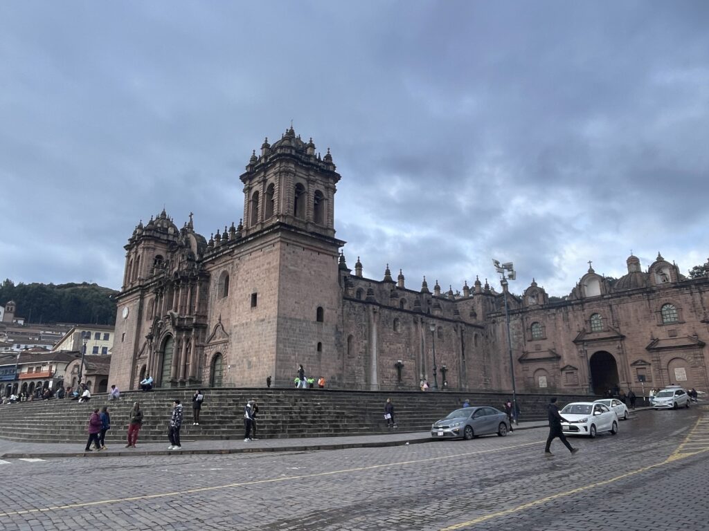 コリンカンチャからゆるい坂道を10分ほど歩き、アルマス広場につきました。広場の脇にはクスコ大聖堂がそびえています。