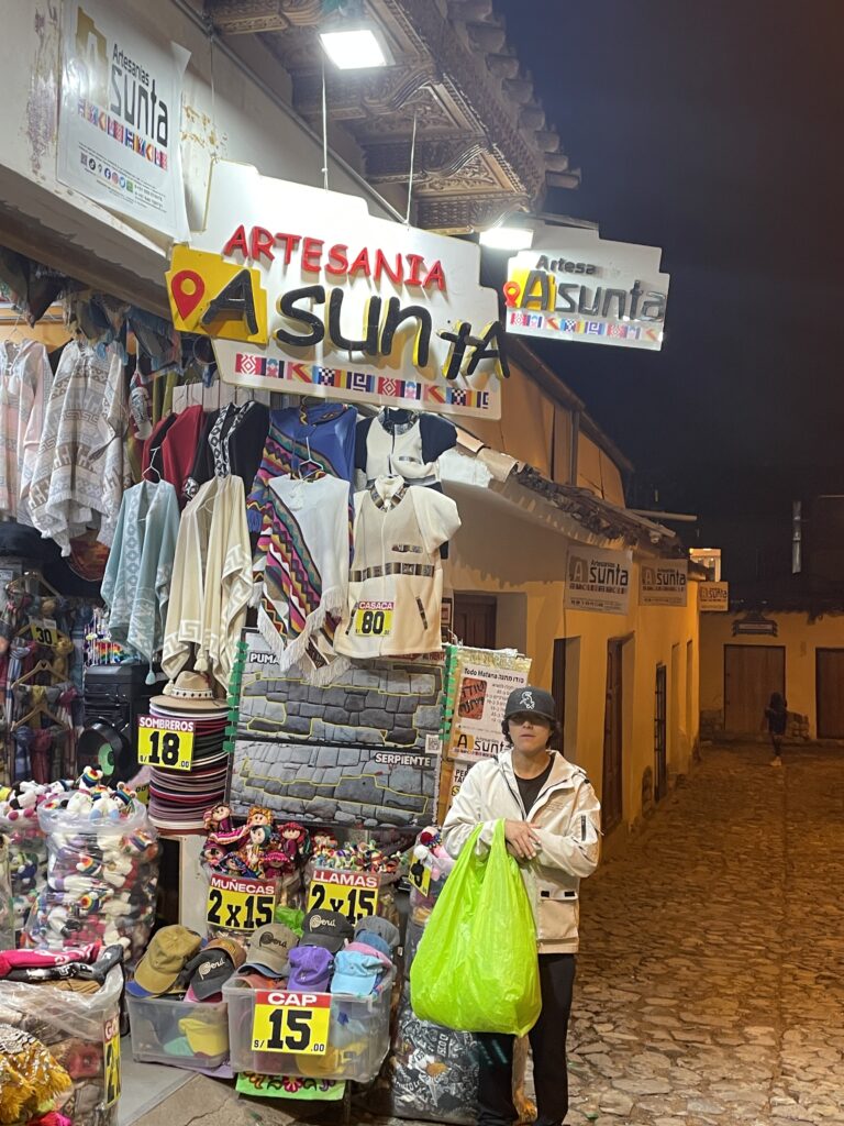 帰りは下りなので、行きよりも少し楽ですが、頭も少しぼやけているので気をつけて下りていきます。再びアルマス広場付近まで戻り、「12角の石」を見てから土産物屋「Altesa Asuna」へ。アルパカ製品が所狭しと並んでいます。ペルー的な派手な柄のものが多いですが、日本でも使えそうな地味目のストールとアルパカ人形の置物を買いました。