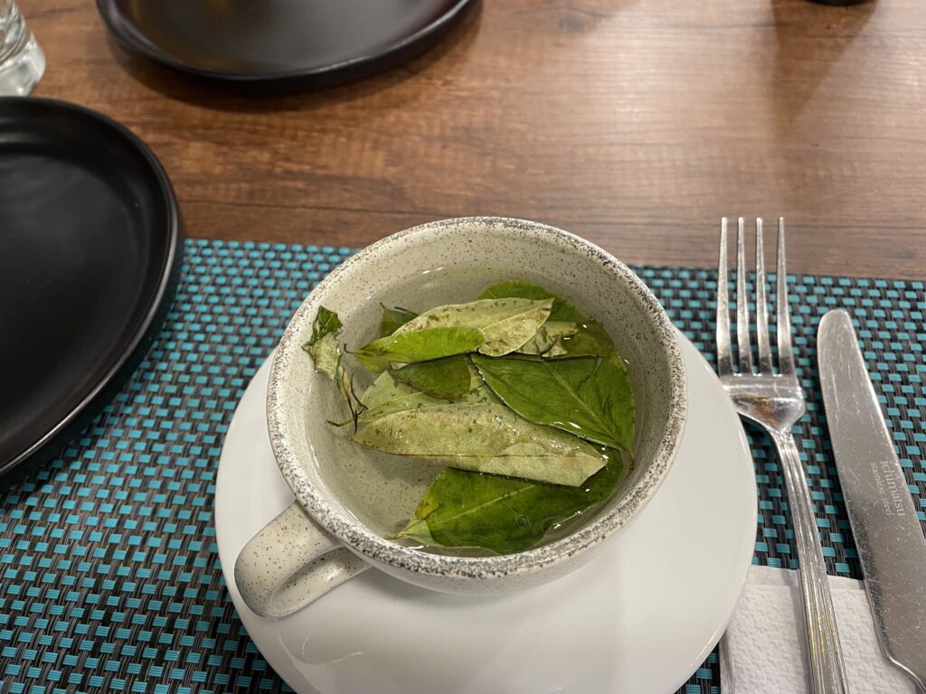 買い物が終わり、ホテル近くのレストランへ向かいますが、さとみんの元気がありません。だるさに加えて頭痛も出てきたようです。レストランに入りましたが、「何も要らない」と大好きなビールも飲みません。これは危険信号です。私が頼んだグリルチキンの付け合わせの野菜を少しだけつまみ、高山病に効くというコカ茶を飲みます。