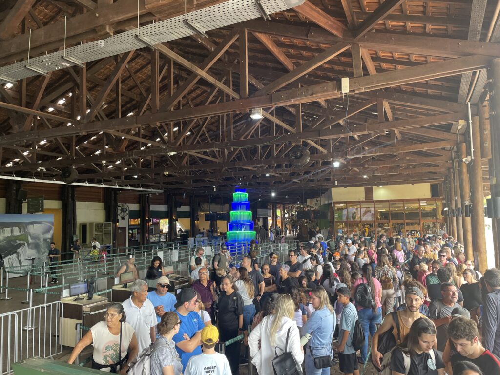 再び乗車して、約20分でブラジル側のイグアスの滝入り口に到着しました。入り口で@130ブラジルリラ(約4,000円)でチケットを購入して入場し、園内バスの列に並びます。多くの人が並んでいましたが、バスは次々と来るので、15分ほど並んで乗車。