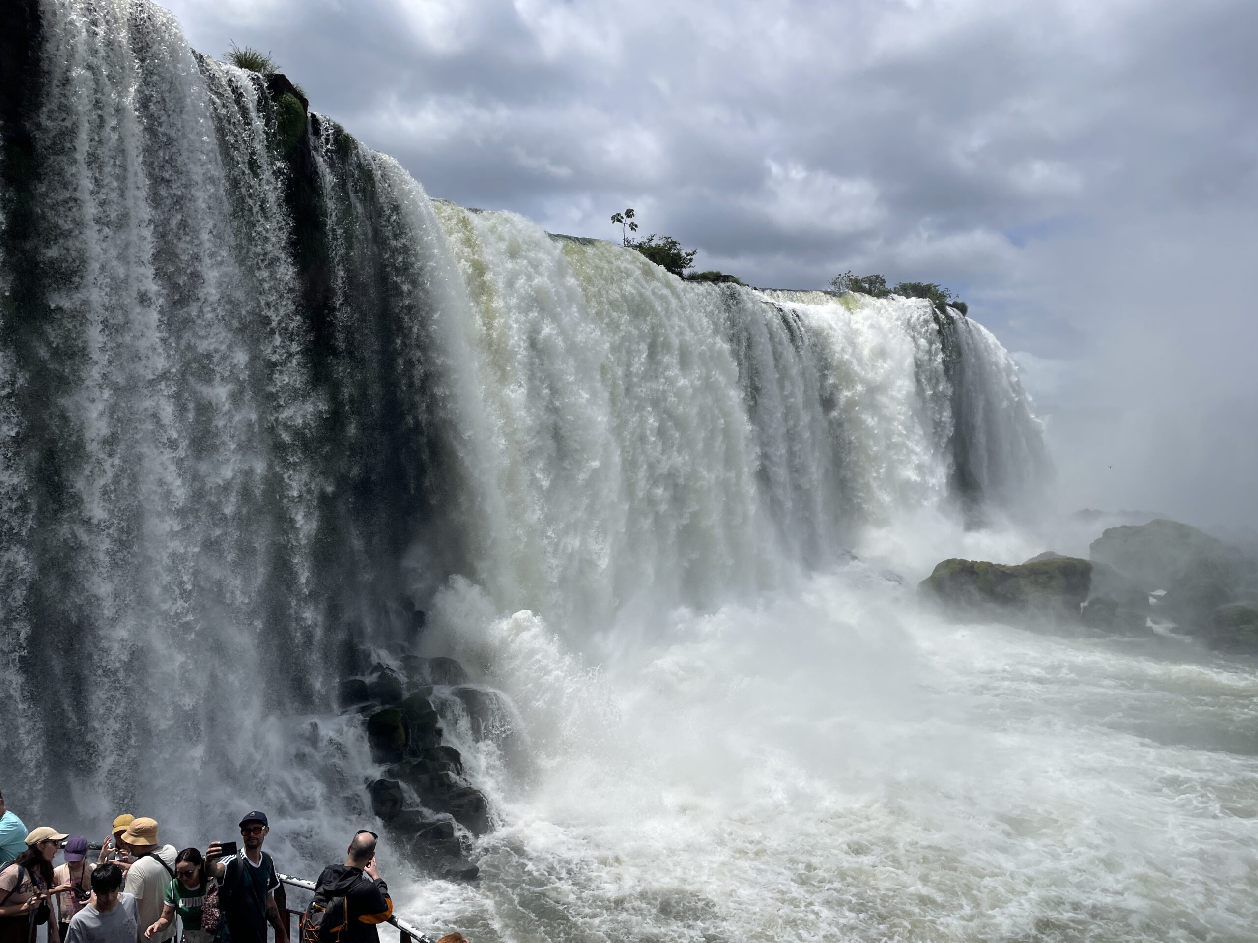 最後は滝のすぐ近くの桟橋で、滝の飛沫と風にびしょ濡れになりながらも、迫力ある風景を堪能します。おそらく、もう一度来ることはないので、絶景を目に焼き付けます。