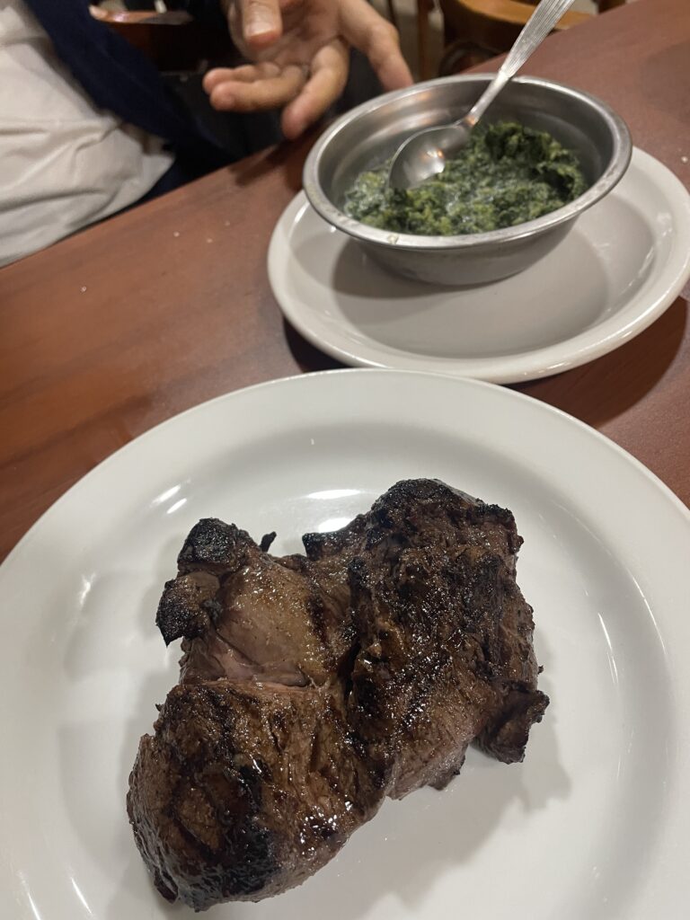 今日もブレることなくステーキを食べに行きます。ローカル色満載の店ですが肉が安くてうまいという書き込みを見て、「La Parrilla de Raul」という店へ行き、牛タンのセビーチェのようなものとテンダーロイン、ビールとマルベックを注文。牛タンは初めての料理法ですが、なかなかの美味。肉の方は形は悪いですが、旨みがしっかりあった柔らかく、約300gあって2,000円ほど。大満足です。