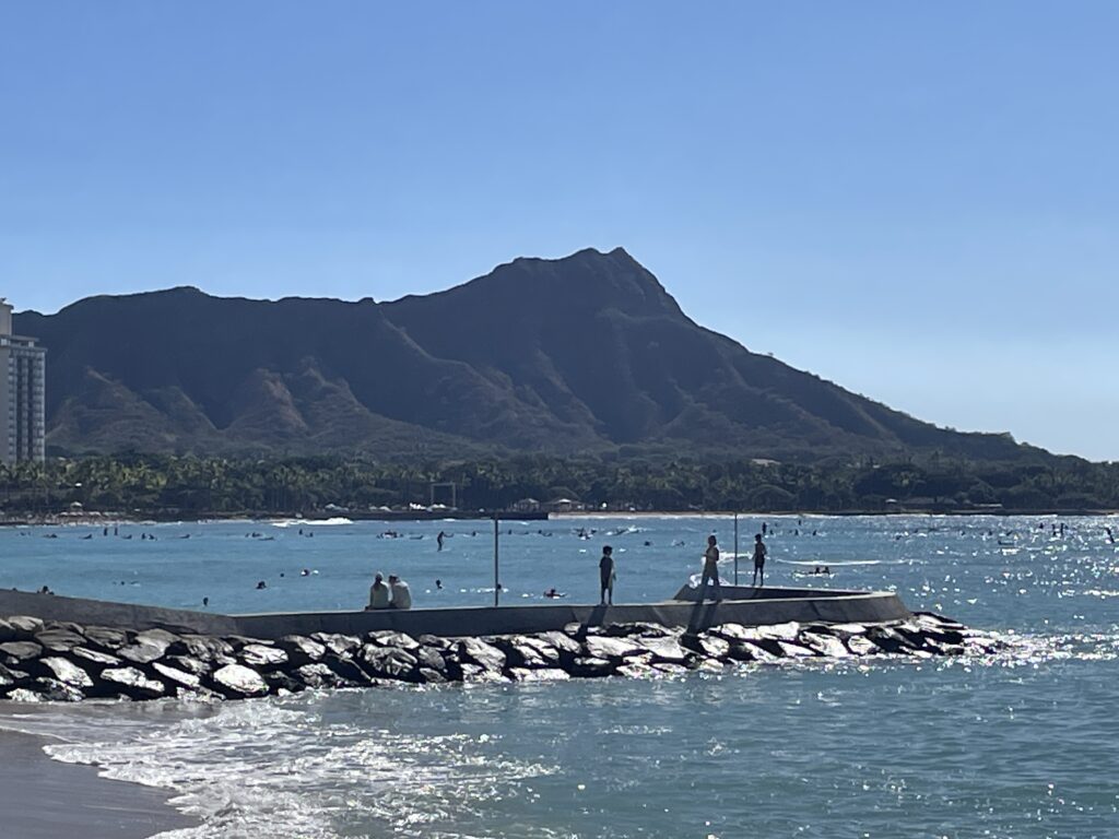 逆光で写りが悪いですが、ダイアモンドヘッドもきれいに見えます。