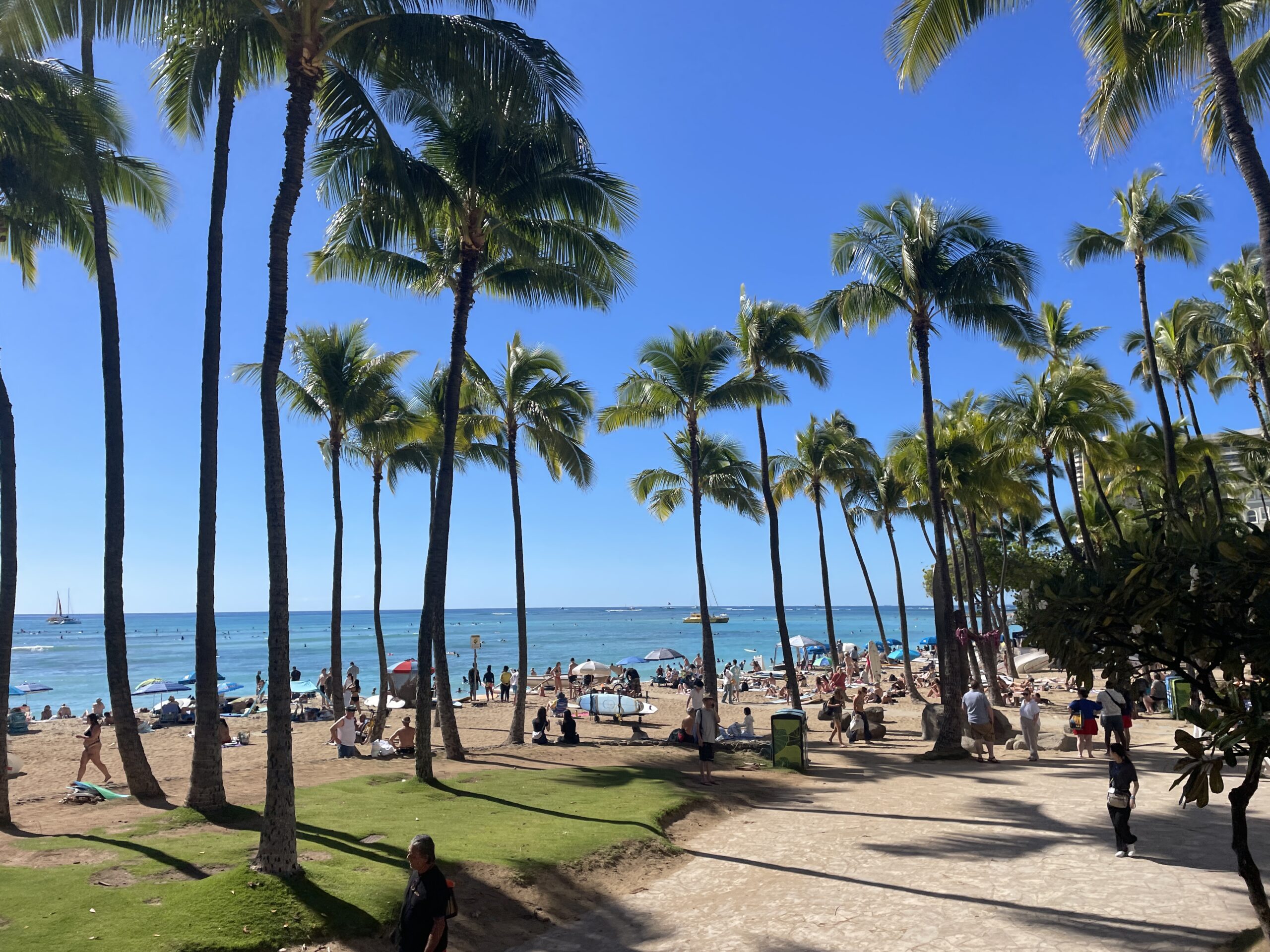 午後はカラカウア通り周辺を散策。12月のハワイは少し気温が低いので、歩いていてとても気持ち良いです。