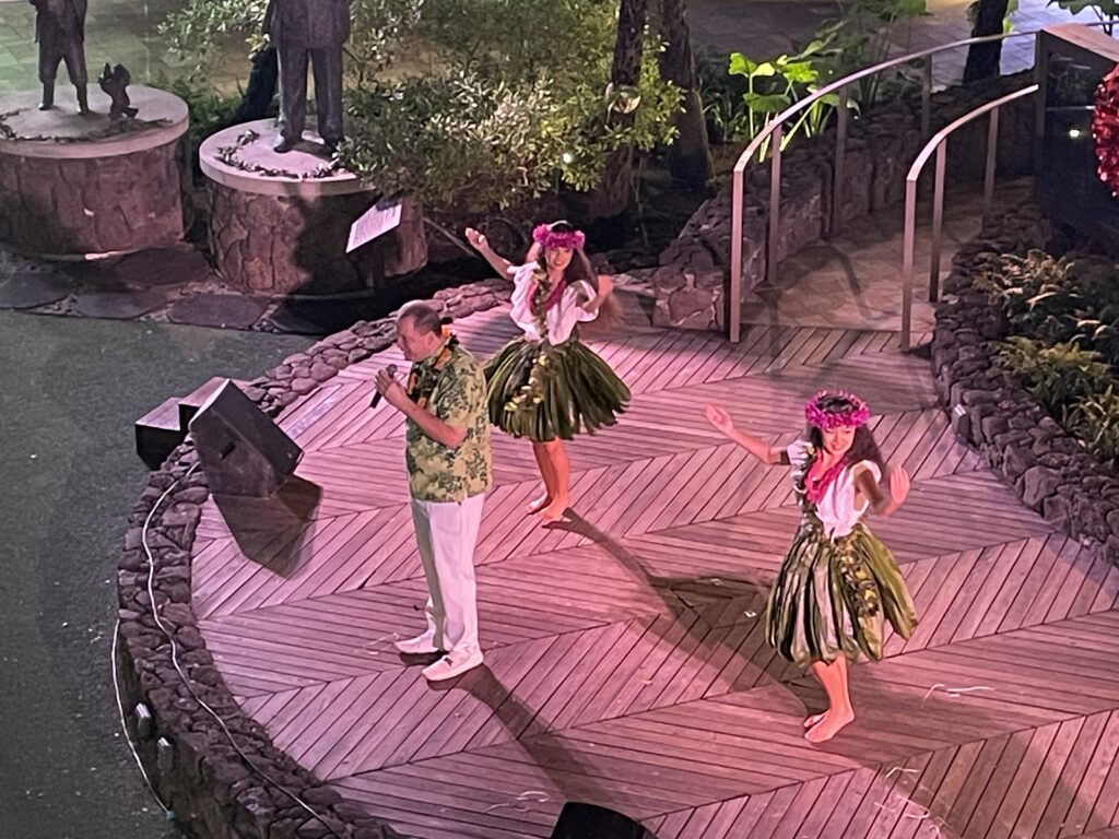 夕日の後は、インターナショナルプレイスに行き、フラダンスを鑑賞。