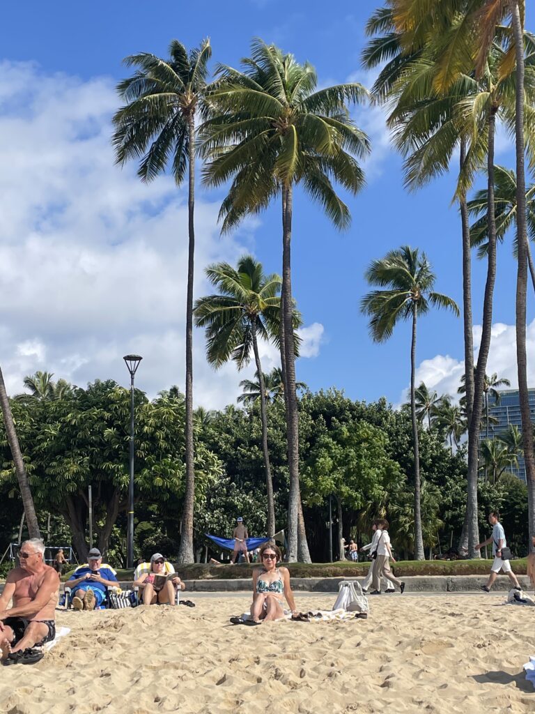 Day17は、天気が回復してピーカンで、午前中はビーチへ。青い海と空、爽やかな風とヤシの木。これだけで気持ちがほぐれてリラックスしてきます。