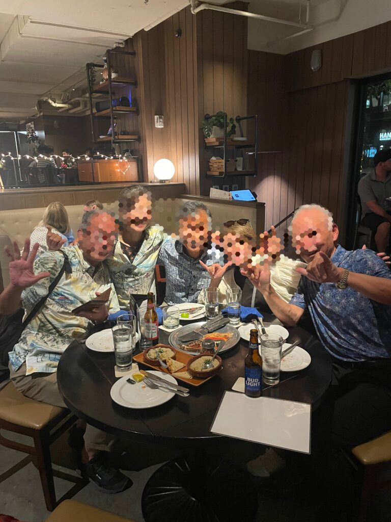 今日の夕食は、シンガポール時代などにお世話になり、現在ホノルルに駐在中の銀行時代の先輩と、仲の良いご同期でホノルルマラソン参加を兼ねてハワイに来られているご夫妻と一緒です。3歳上の先輩方で、それぞれの人生を楽しまれているご様子。刺激を受けます。
